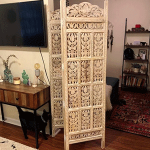 The Modern Ria Rattan Screen Room Divider adds a touch of elegance to my living space. Its solid wood construction ensures durability, and the white-washed finish complements any decor beautifully.