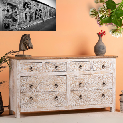 Original price was: ₹89,999.00.₹34,999.00Current price is: ₹34,999.00.Sophistication Redefined Hand Carving Eclectic Chest of Drawers