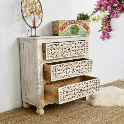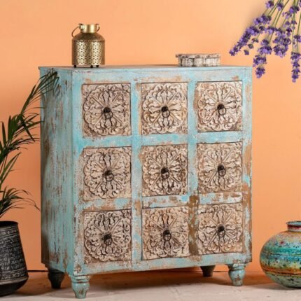 Original price was: ₹59,999.00.₹29,999.00Current price is: ₹29,999.00.Functional Elegance Hand Carving Floral Chest of Drawers