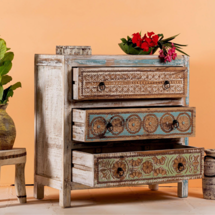 Original price was: ₹39,999.00.₹19,999.00Current price is: ₹19,999.00.Organize in Style with Furncarve's Hand Carved Chest of Drawers