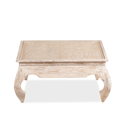 Crafted Elegance Hand Carved Distressed White Coffee Table with Chow Legs