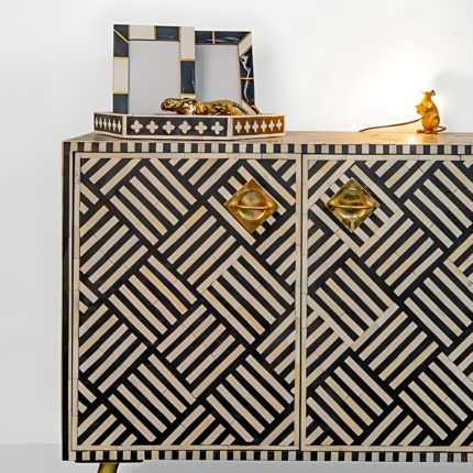 Crafted Elegance Black and White Bone Inlay Sideboard