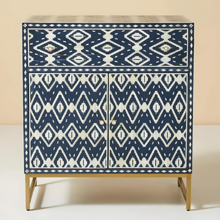 Elegance Defined Blue & White Bone Inlay Jade Cabinet