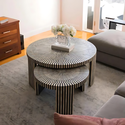 Efficient Refinement Striped Bone Inlay Nesting Coffee Table