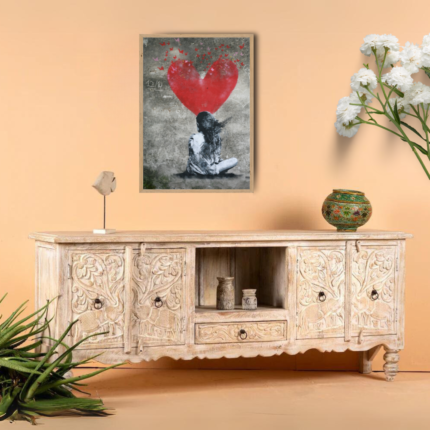 Elegance Defined Hand Carved Floral Design TV Cabinet