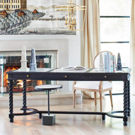 Elegant Efficiency Hand Carved Barley Twist Study Table