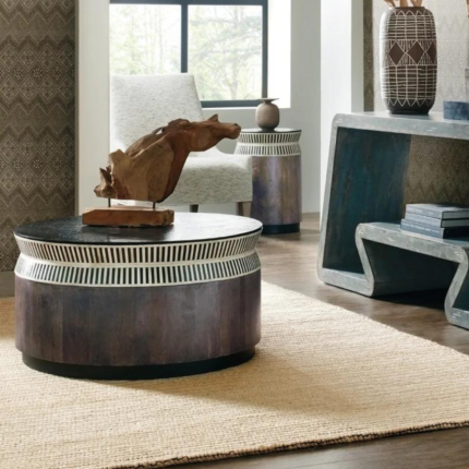 Enriched Existence Jacobs Ladder Bone Inlayed Drum Coffee Table