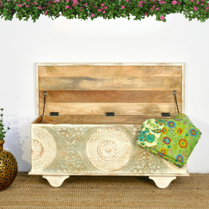 Hand Carved Rustic White Trunk Box