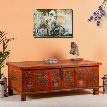 Innovative Design Hand Carved Antique Natural Finish Console Table
