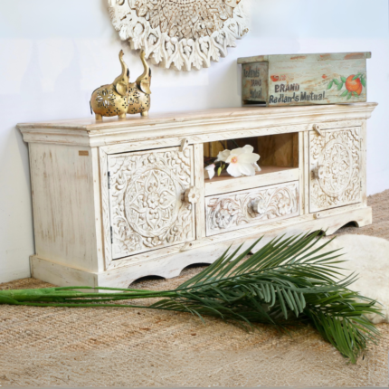 Innovative Design Bone Inlay Honey Style TV Unit Cabinet