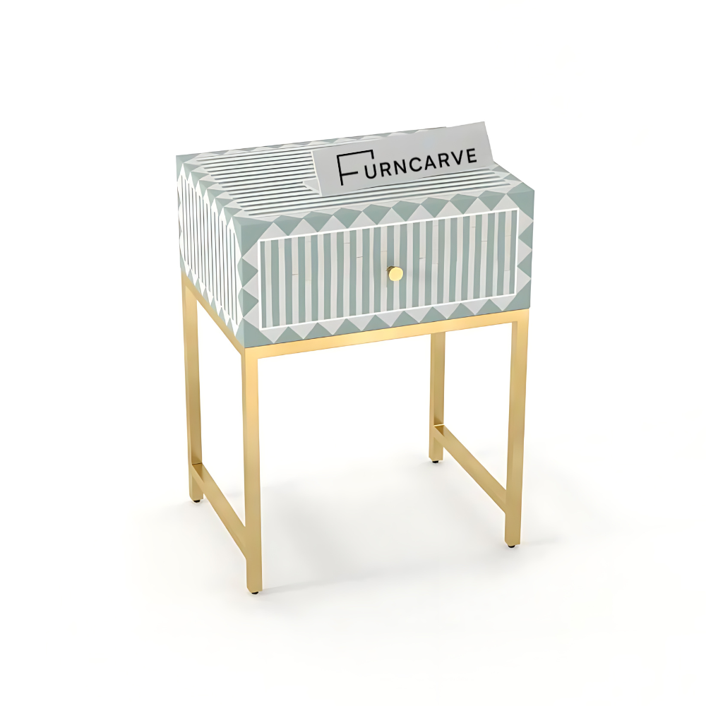 Elevated Lifestyle Abstract Design Bone Inlay Bedside Table