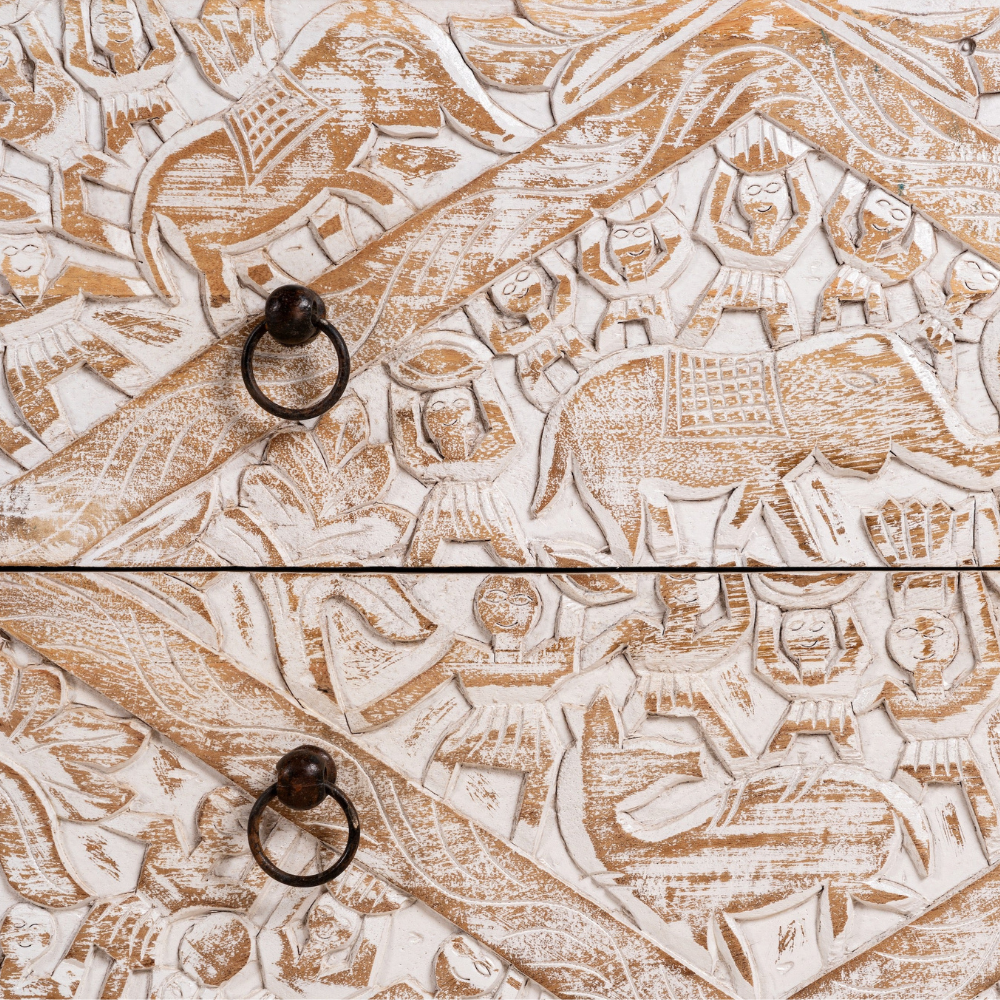 Experience the charm of handcrafted Indian furniture. Let its mango wood construction and elephant-inspired engraved designs create a captivating centerpiece that celebrates tradition and craftsmanship in your home.