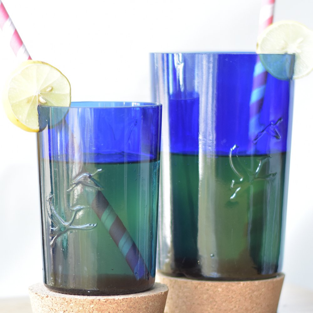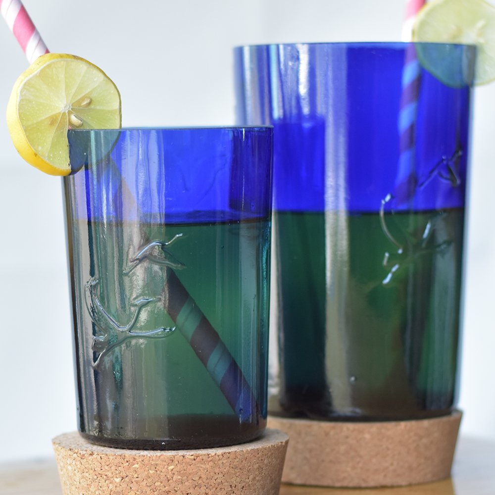 Introducing our exquisite Antiquity Blue glasses, expertly cut from recycled bottles and hand-polished to perfection. Each glass holds approximately 16 ounces, providing the perfect blend of elegance and functionality for everyday use. Their striking blue color and superior craftsmanship make these glasses truly remarkable. Elevate your drinkware collection with these amazing blue glasses!