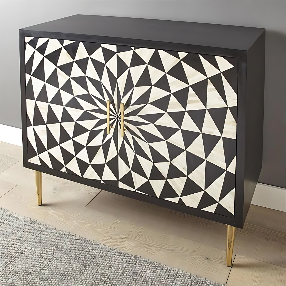 Crafted Comfort Black & White Bone Inlay Aatma Cabinet