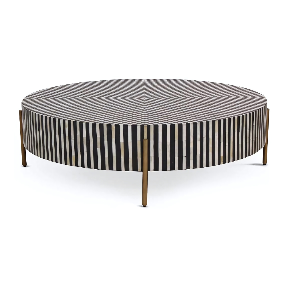 Jacobs Ladder Bone Inlayed Drum Coffee Table