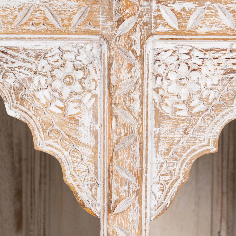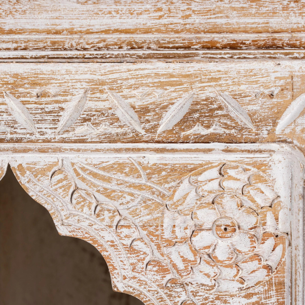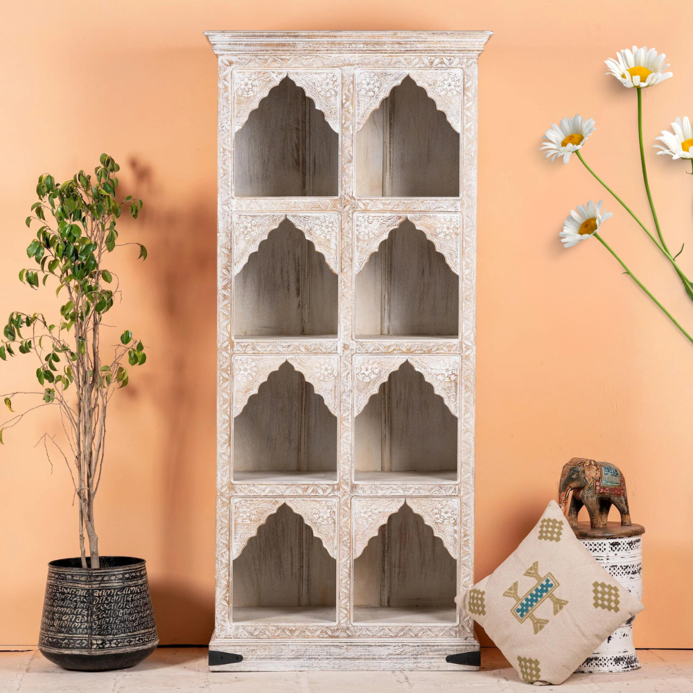 The bookcase has a Mediterranean style and will be an eye-catcher in your living room, your bedroom, or your bathroom. With 8 compartments, it offers plenty of storage space. The frame of the shelf is richly decorated with handmade carvings.