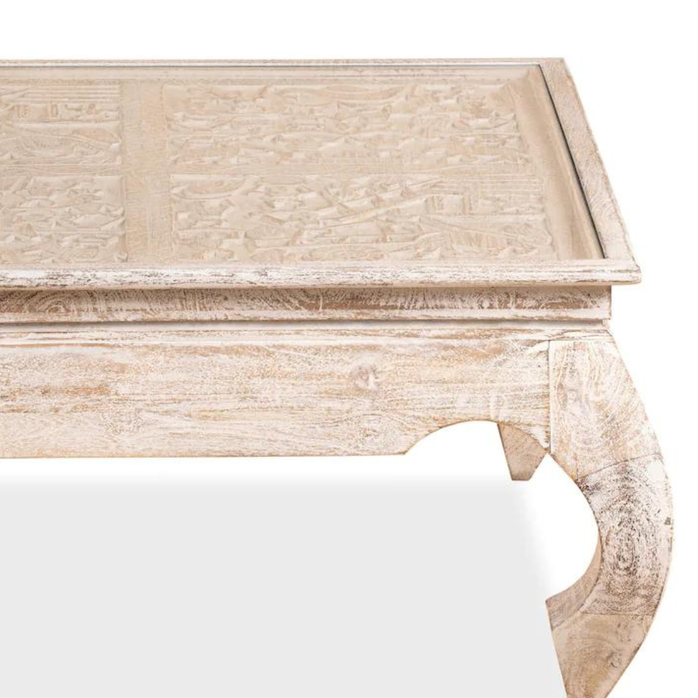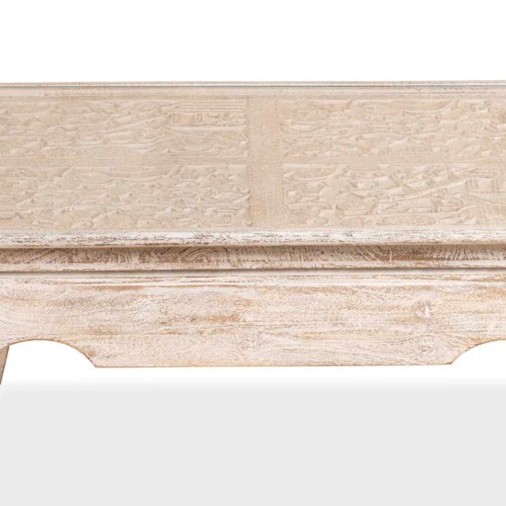 Crafted Elegance Hand Carved Distressed White Coffee Table with Chow Legs