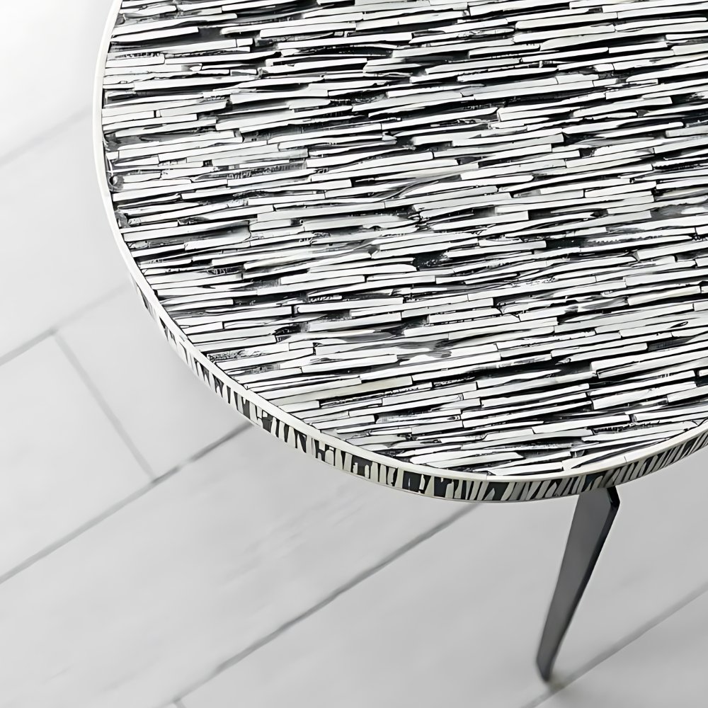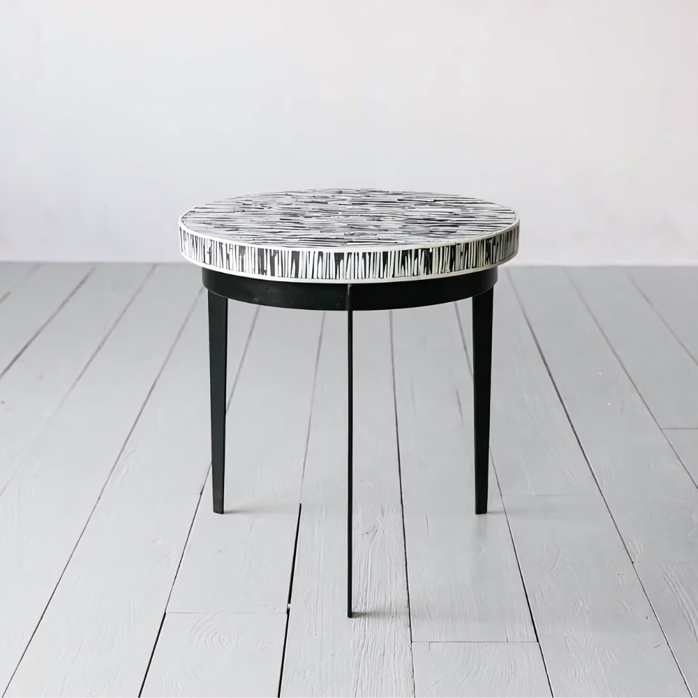 Stylish Ewing Round Bone Inlay Side Table