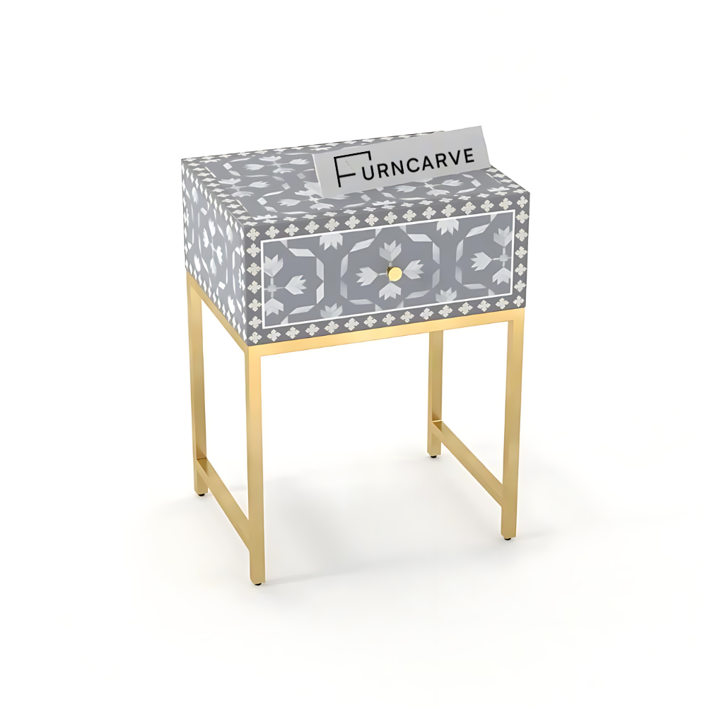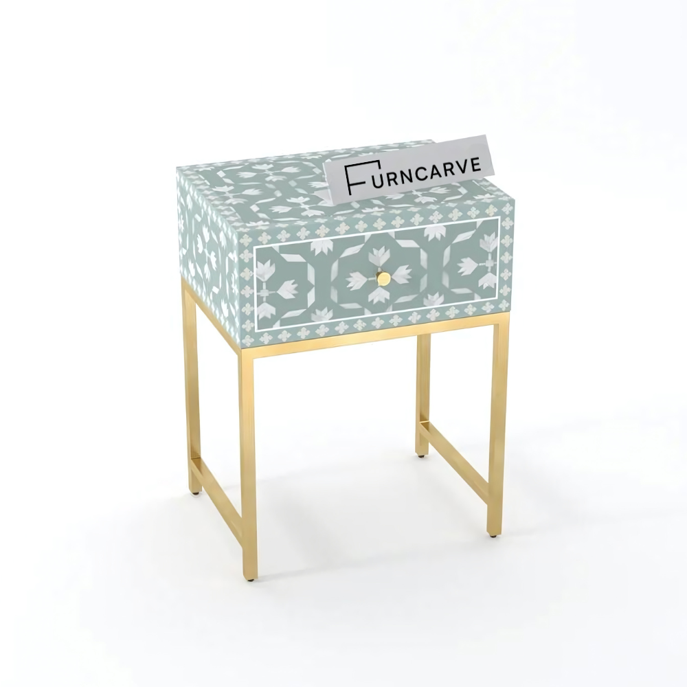 Inspired Living Floral Bone Inlay Bedside Table