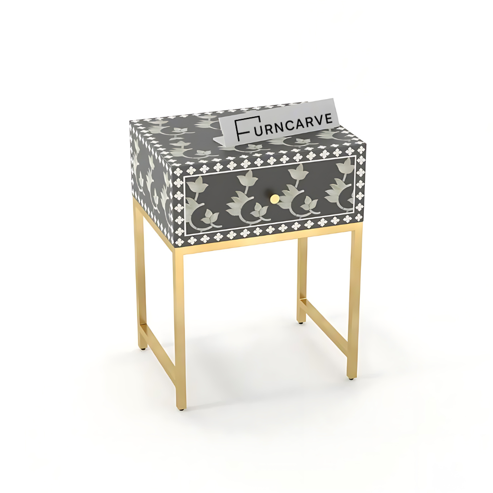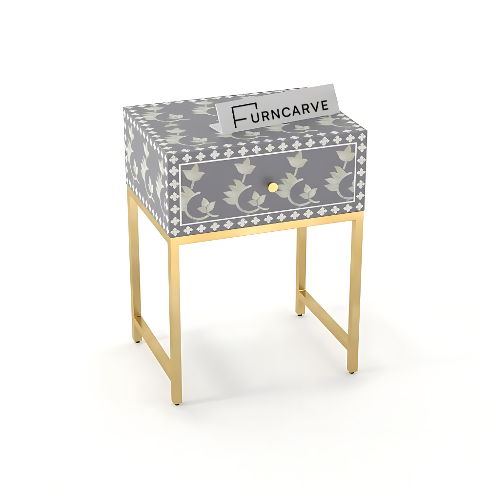 Grey Bone Inlay Bedside Table