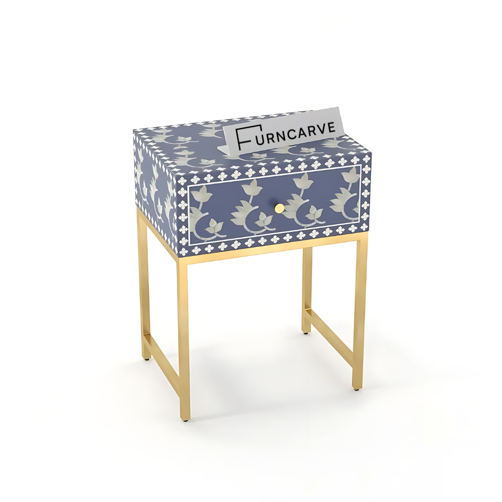 Home Shop Bone Inlay Bedside Uplifted Living Floral Style Bone Inlay Bedside Table