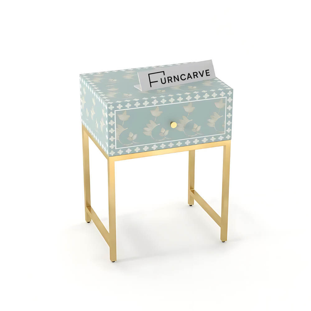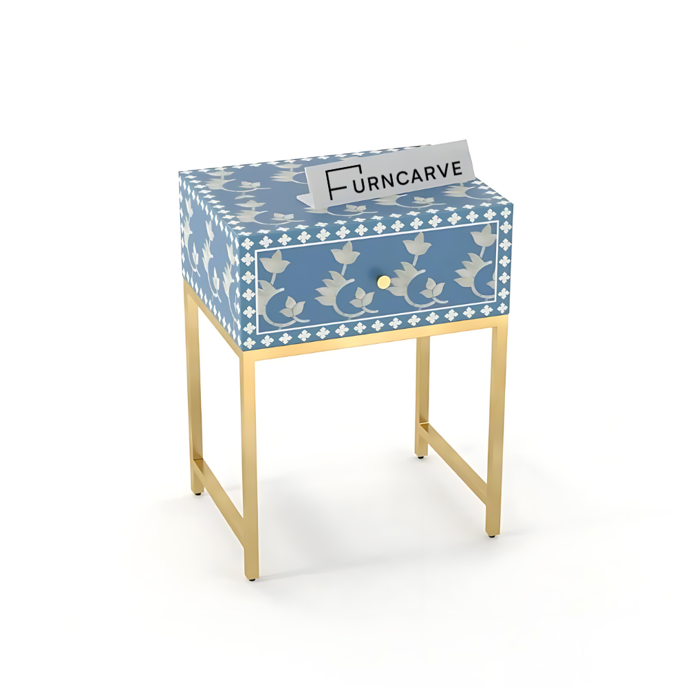 Uplifted Living Floral Style Bone Inlay Bedside Table