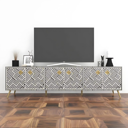 Enriched Existence Bone Inlay Geometric Flower Shape TV Cabinet ₹89,999.00 – ₹99,999.00Price range: ₹89,999.00 through ₹99,999.00