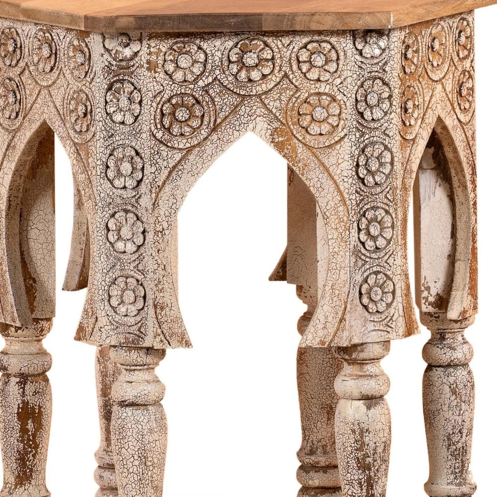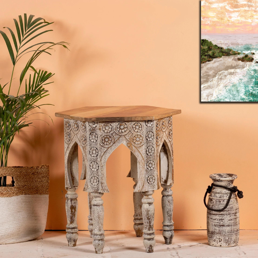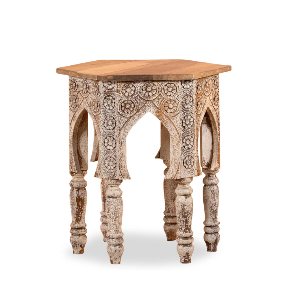 This unique little Side Table is decorated with an intricately carved floral pattern. In its striking color applied in 3 Layers, this table will bring a vintage feel to your home.