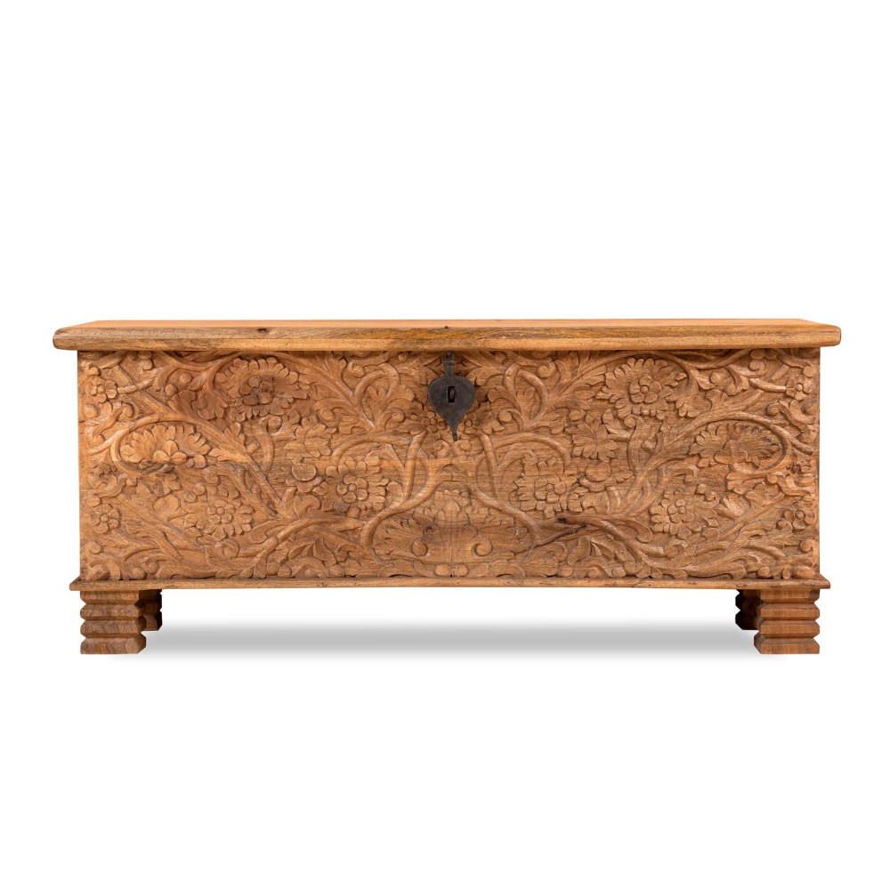 Inspired Hand Carved Trunk Box has a Mediterranean style and will be an eye-catcher in your living room, your bedroom, or your bathroom. With its large compartment, it offers plenty of storage space. The size of the cabinet also makes it ideal to use as a coffee table in front of your sofa or as a small Trunk Box TV table.
