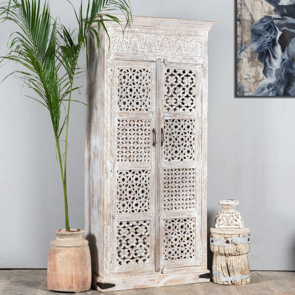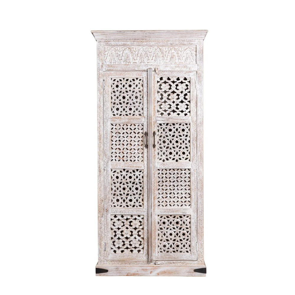 Eternal Essence Hand Carved Lattice White Wardrobe