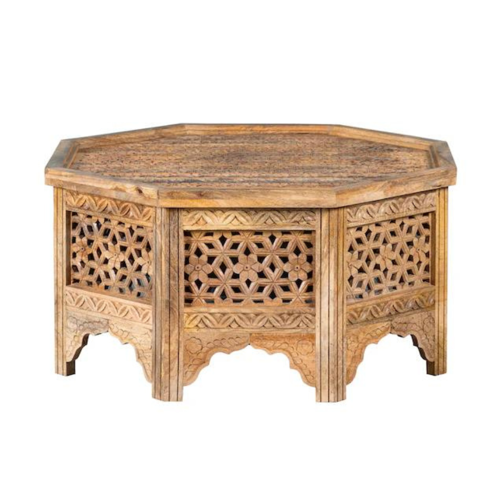 Timeless Design Hand Carved Octagonal Round Coffee Table