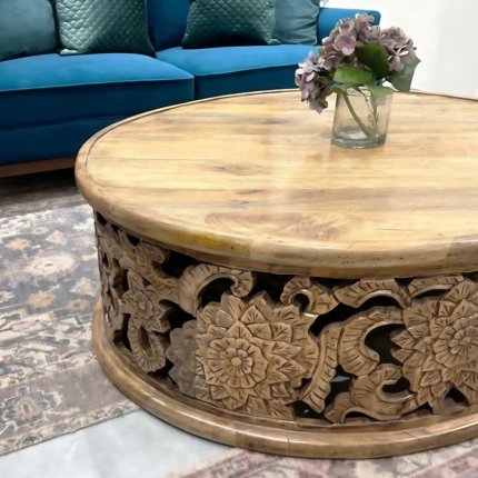 Hand Carved Round Coffee Table