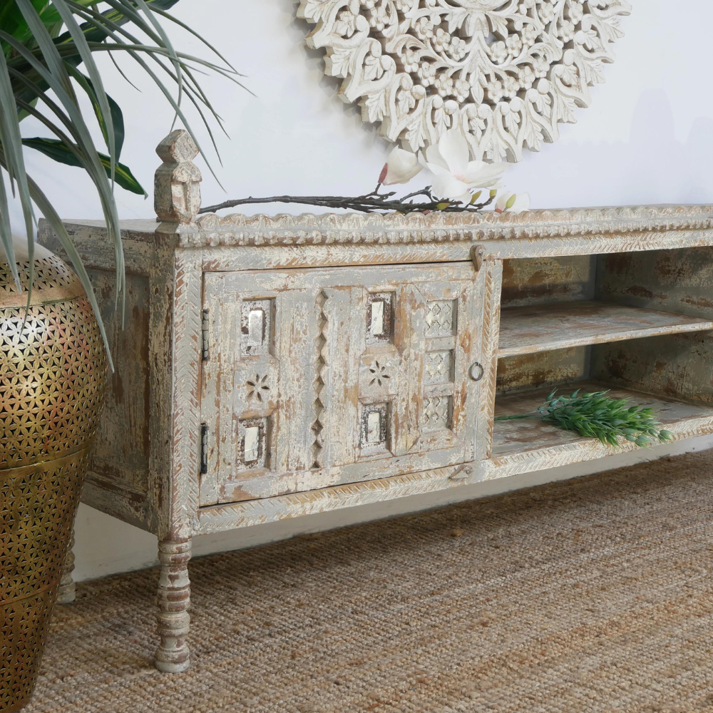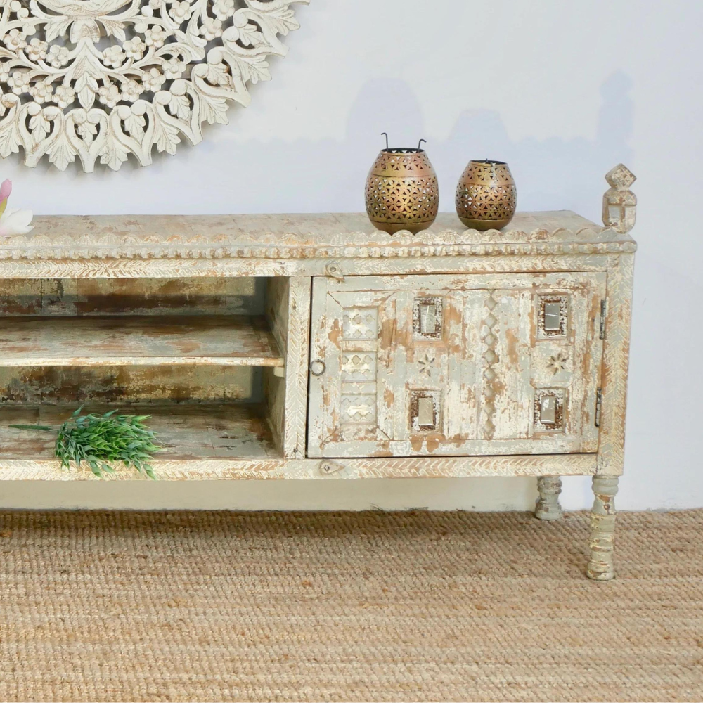 TV unit Seinfeld has a Mediterranean style and will be an eye-catcher in your living room, bedroom, or bathroom. You will purchase an antique, refurbished piece.