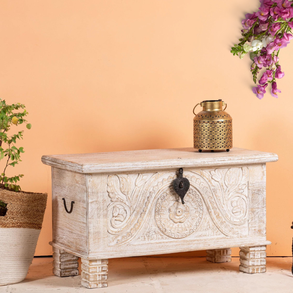 Functional Elegance Hand Carved Vintage Trunk Box