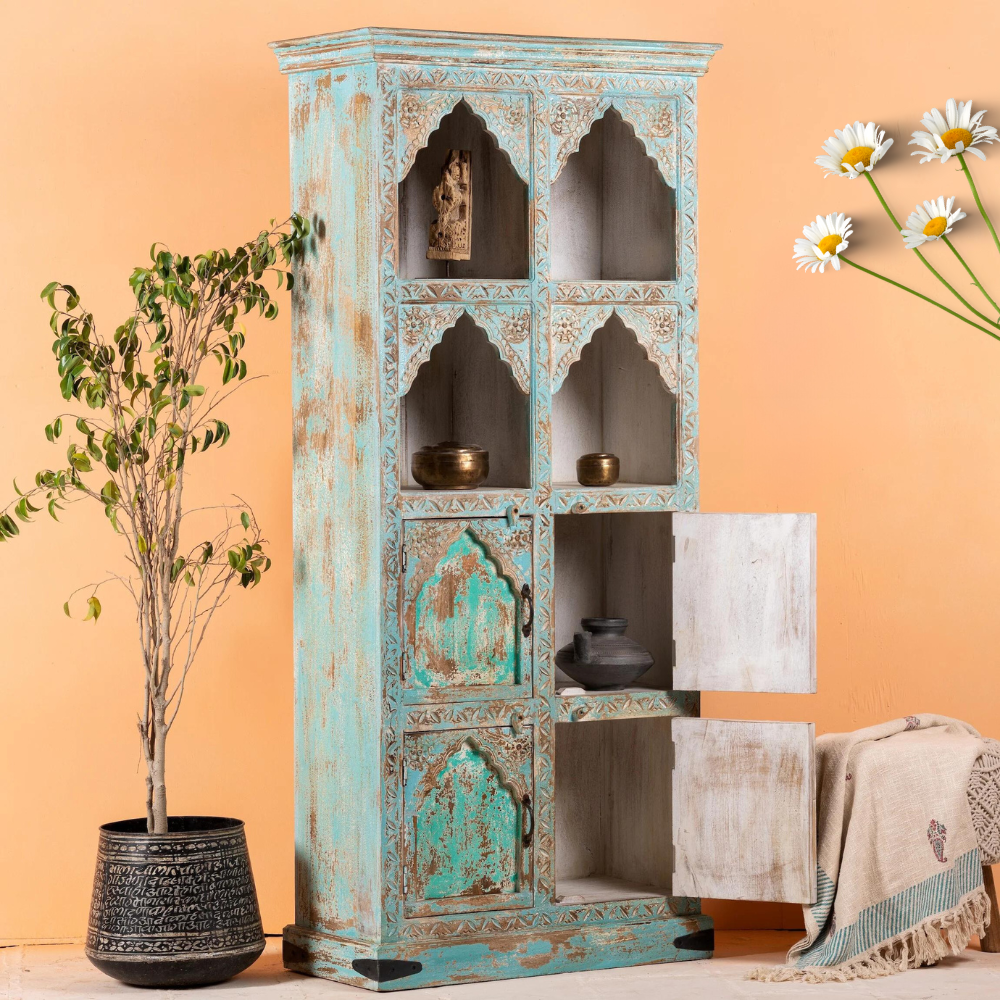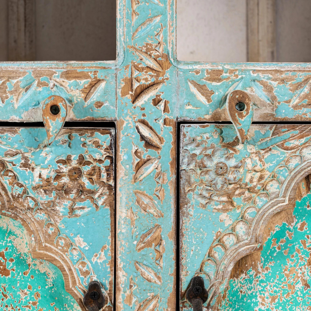 Crafted from high-quality mango wood, the “Vintage” shelf exudes both durability and natural beauty. The turquoise-washed color enhances its visual appeal, creating a captivating focal point in any room.