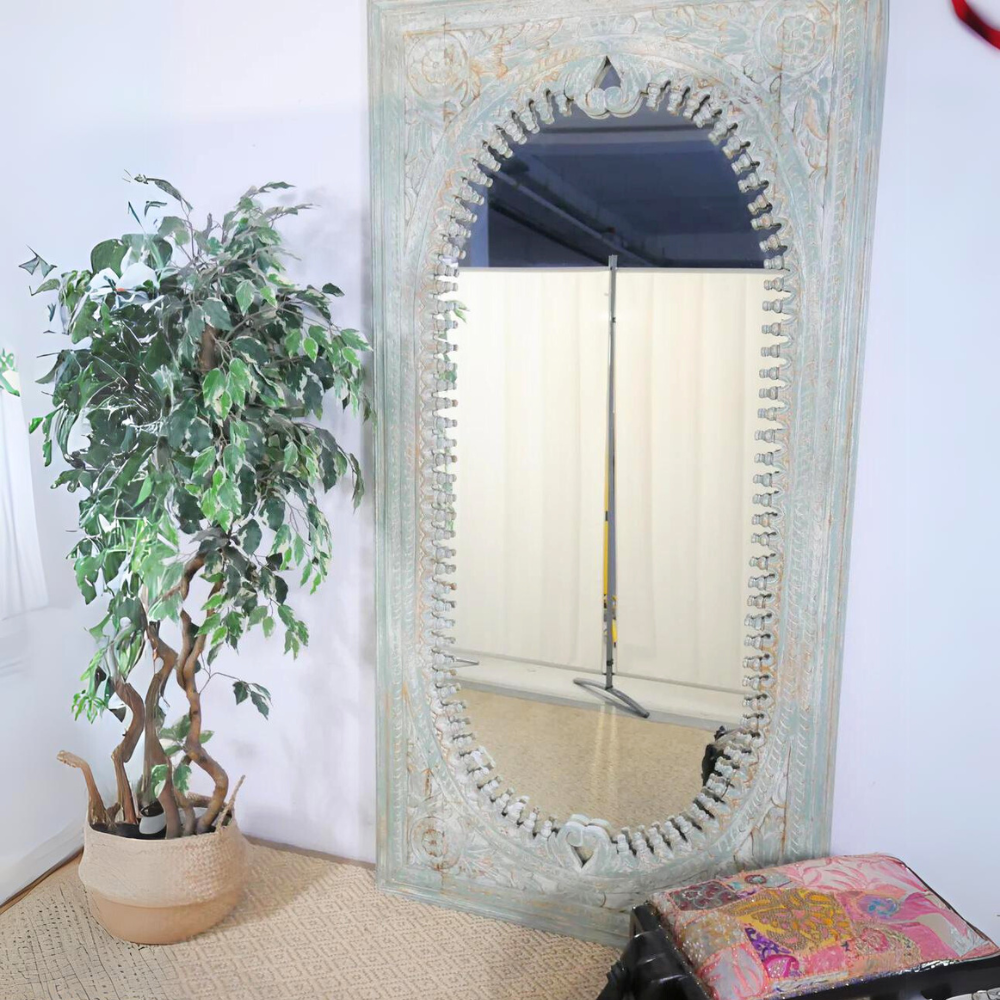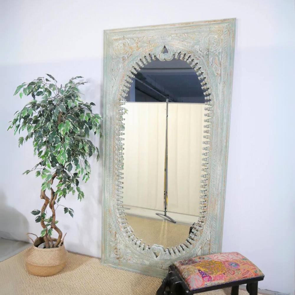 These large wall mirrors with hand-carved wooden frames will visually enlarge and brighten any room and are a must-have for any interior.