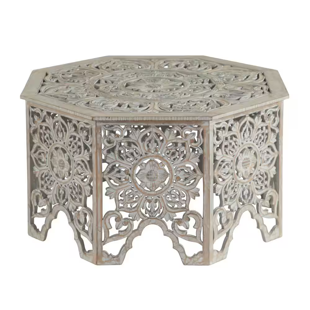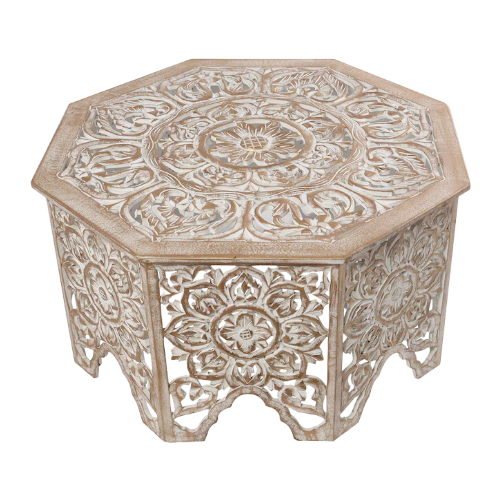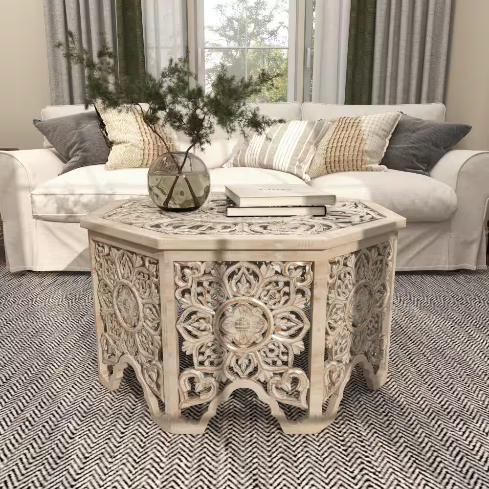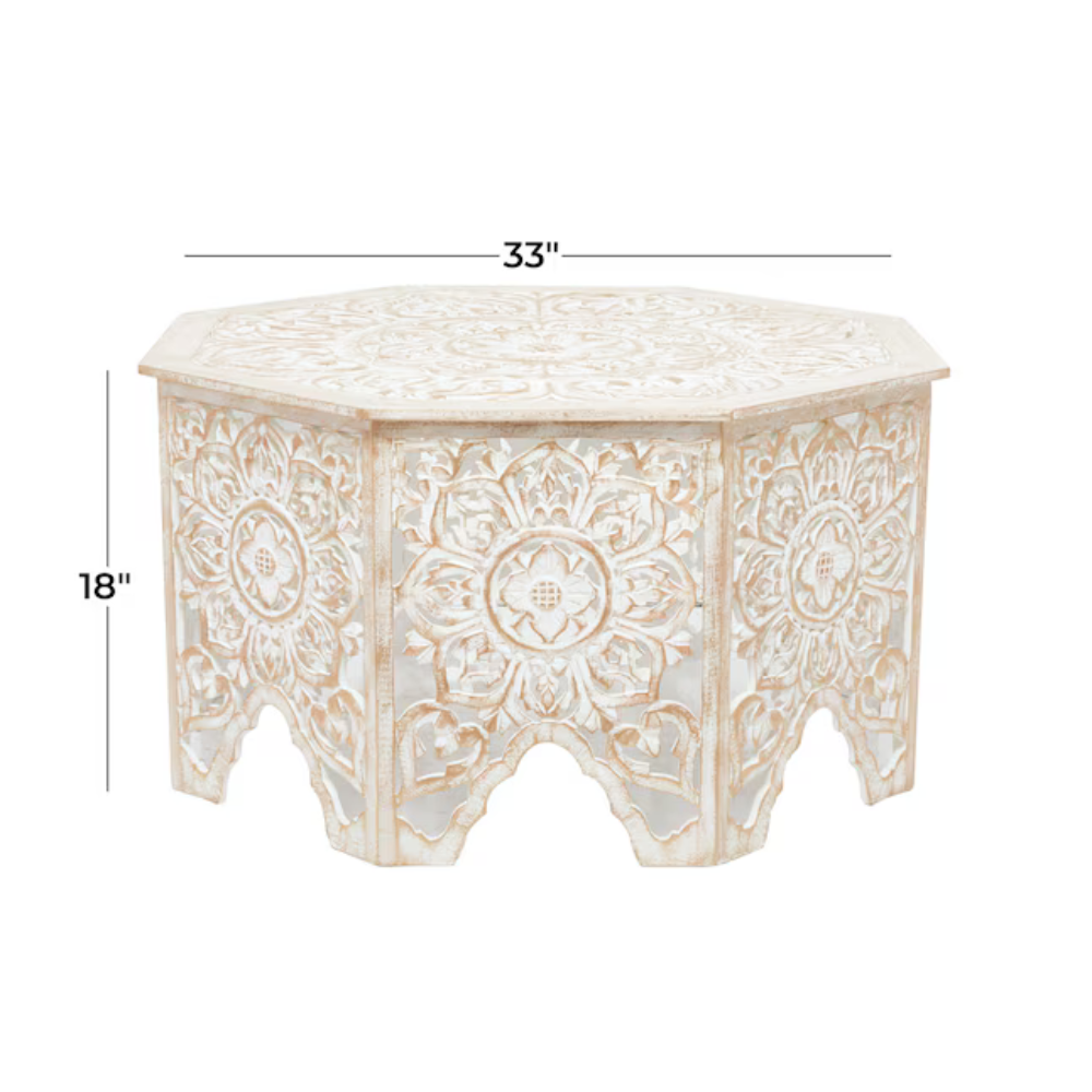 Eternal Classics Hand Carved Wooden Octagon Coffee Table