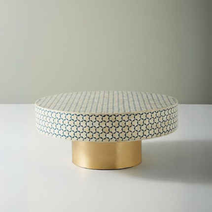 Enriched Existence Jacobs Ladder Bone Inlayed Drum Coffee Table