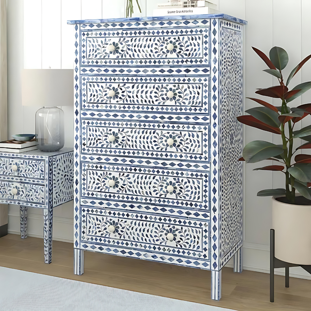 Elevated Lifestyle Jade Large Blue Bone Inlay Chest of Drawers