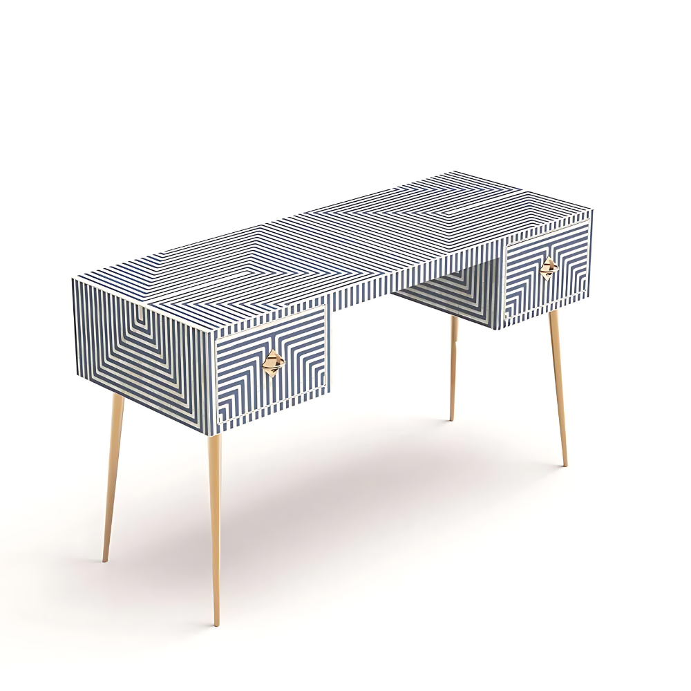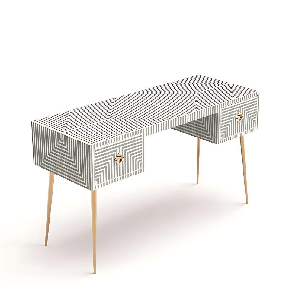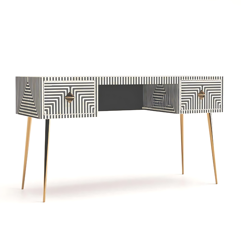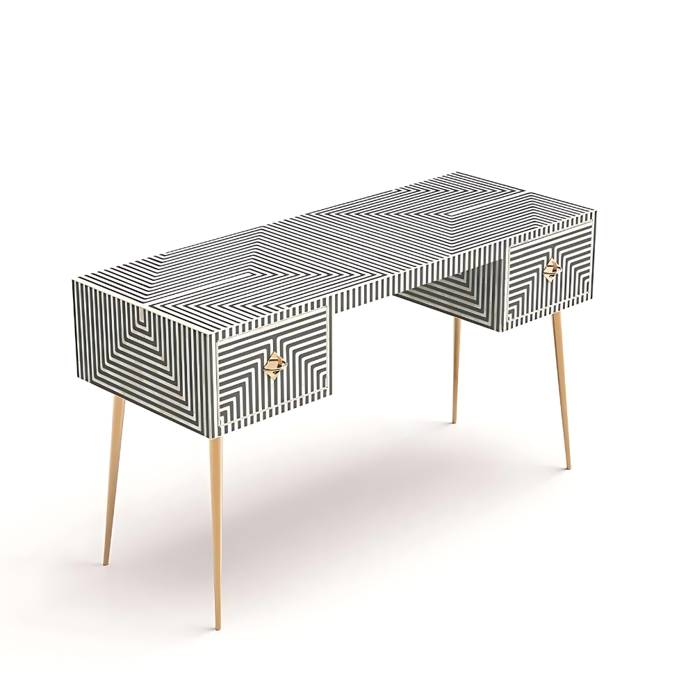 This inlay work desk exudes unparalleled craftsmanship. Artful and functional at once, this striking desk offers a petite perch and ample storage for productive work-from-home days.