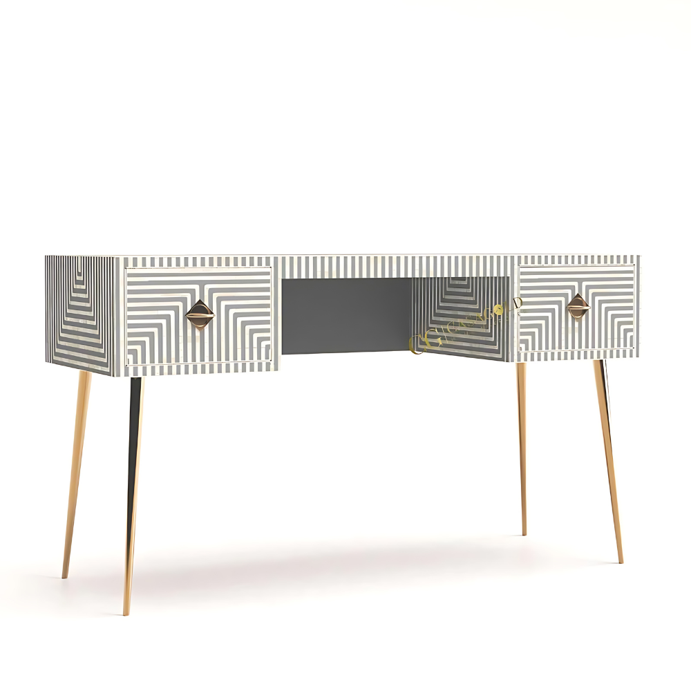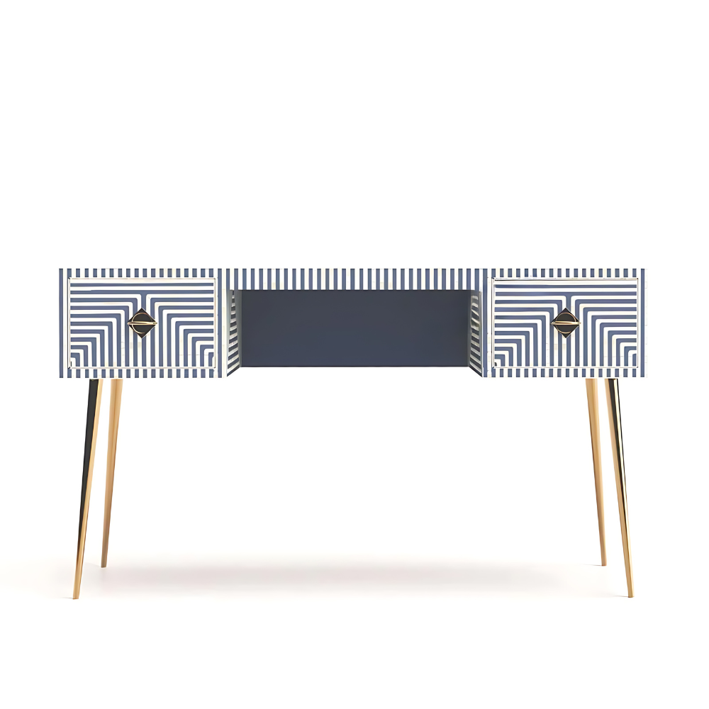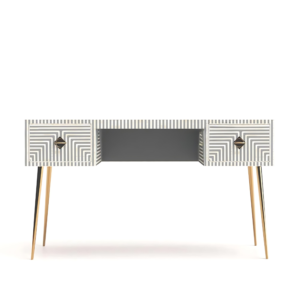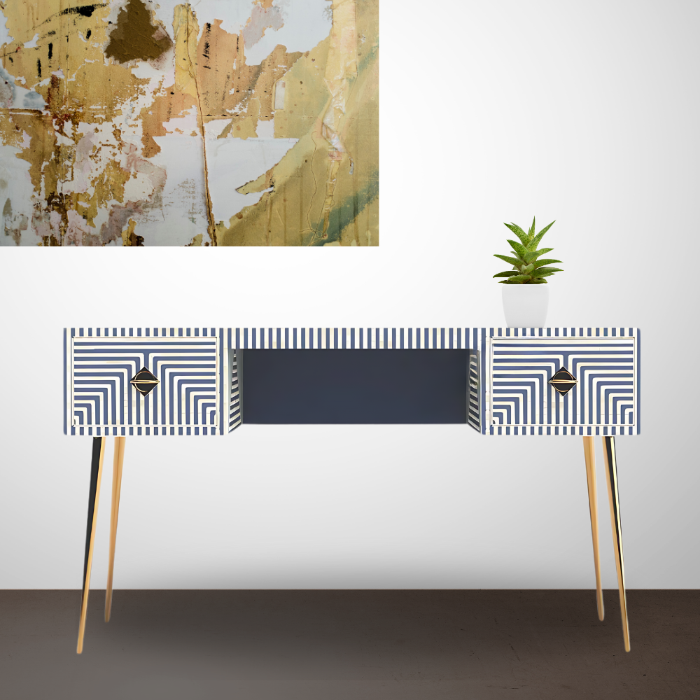 This inlay work desk exudes unparalleled craftsmanship. Artful and functional at once, this striking desk offers a petite perch and ample storage for productive work-from-home days.