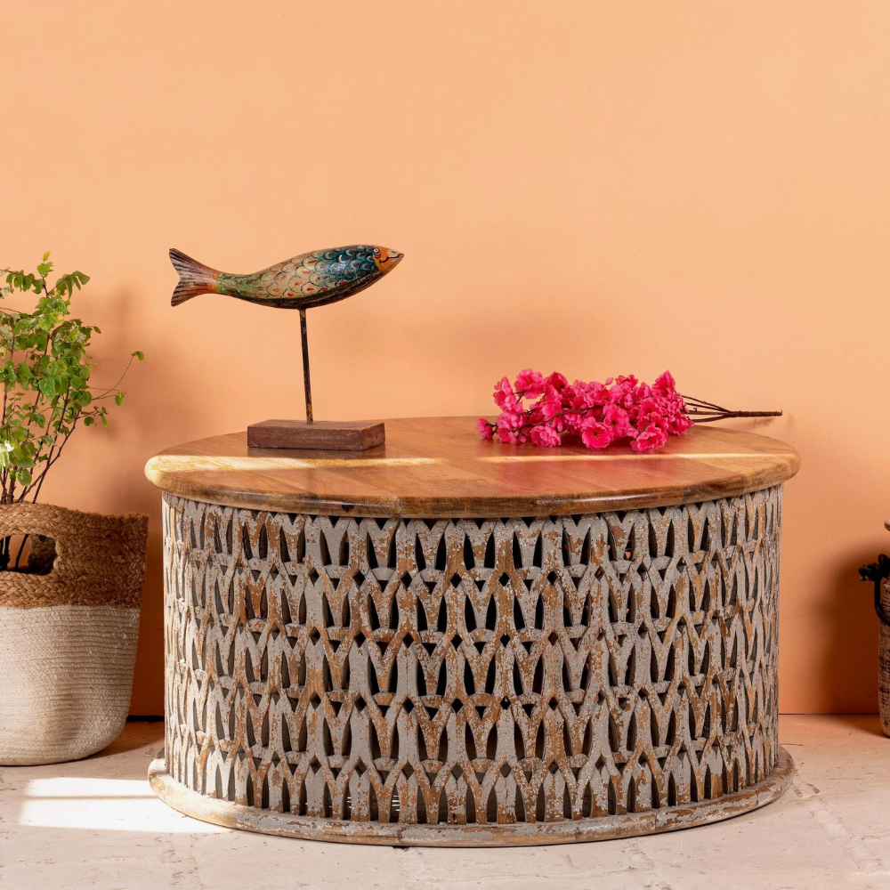 - Handcrafted Pieces: Each piece of ours is elaborately handcrafted and carved from natural wood. You’ll find asymmetrical and irregular designs through the hand-carved patterns, which give our pieces distinctive characteristics.