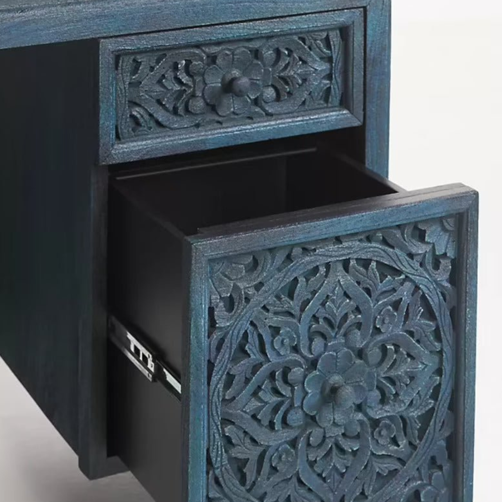 Uplifted Living Hand Carved Lombok Executive Study Table