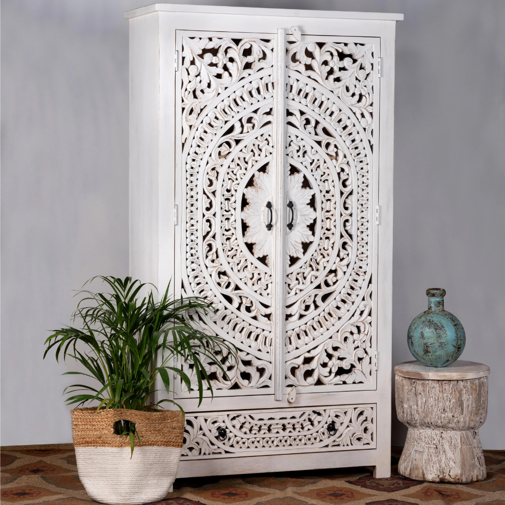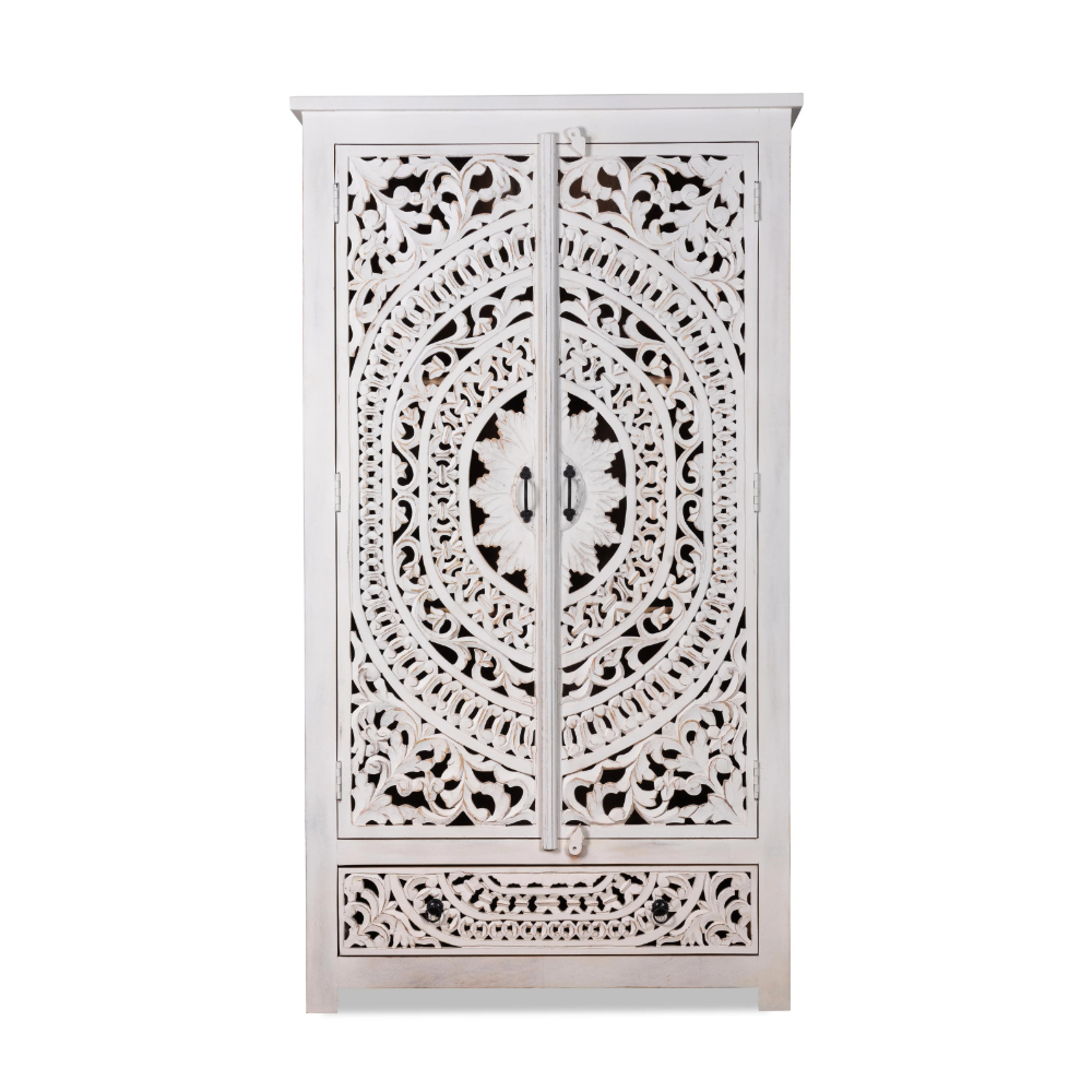 Contemporary Classics Hand Carved Lombok White Wash Wardrobe
