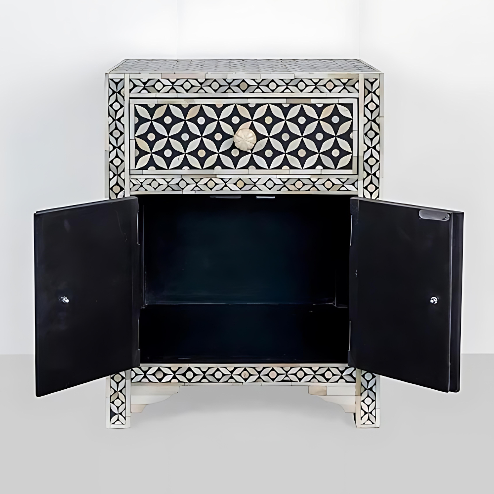 This highly versatile table is designed to make an impact on any decor and style of home. The intricate bone inlay patterns have been handcrafted by our skilled artisans and each dip and dive in the swirling floral pattern has been carved with absolute care.