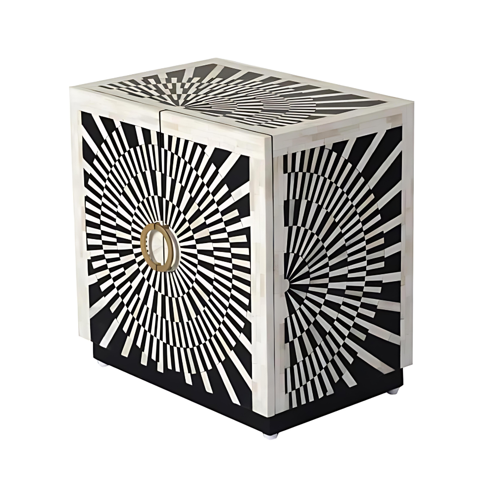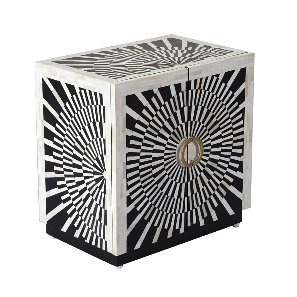 Ivory Elegance Monochrome Bone Inlay Cabinet