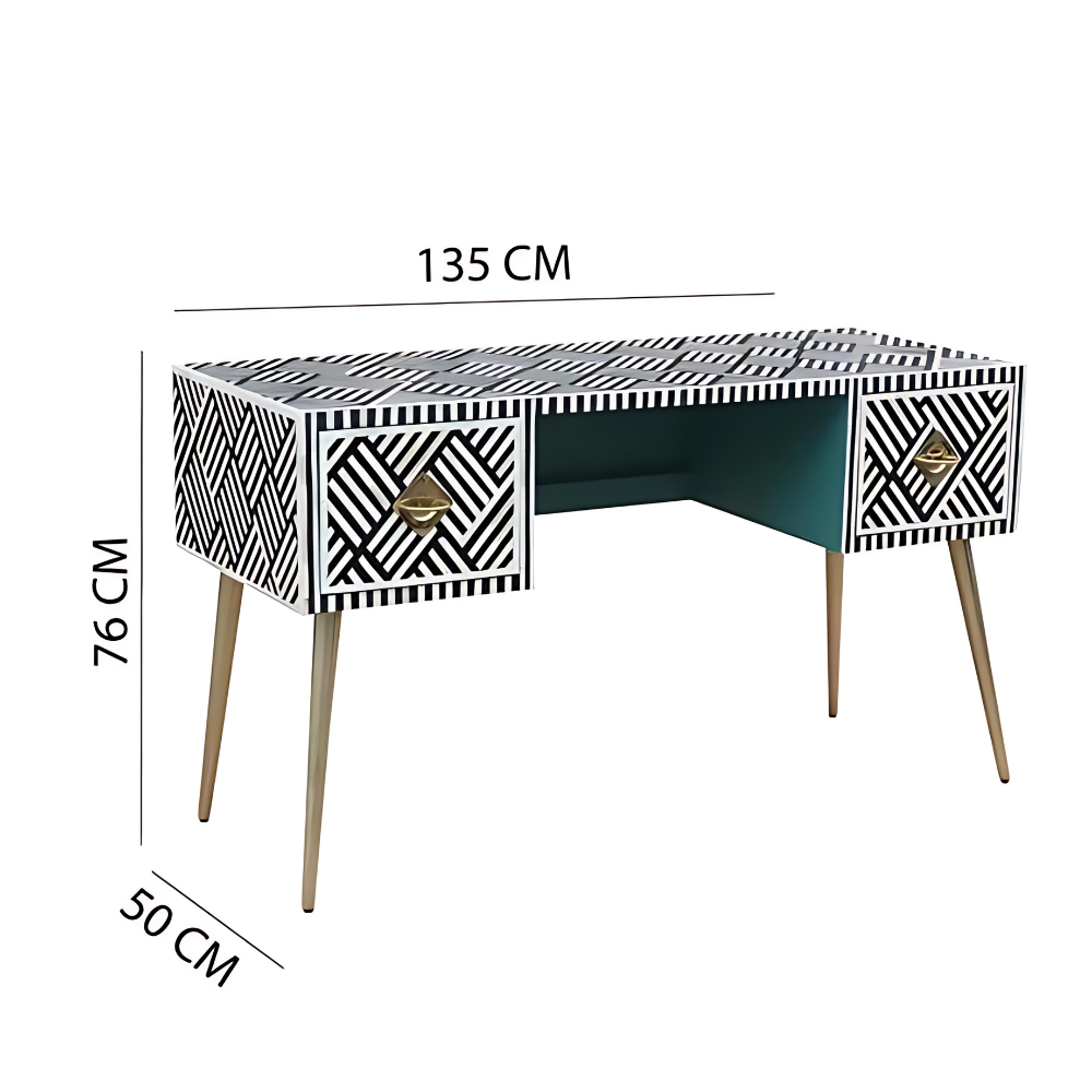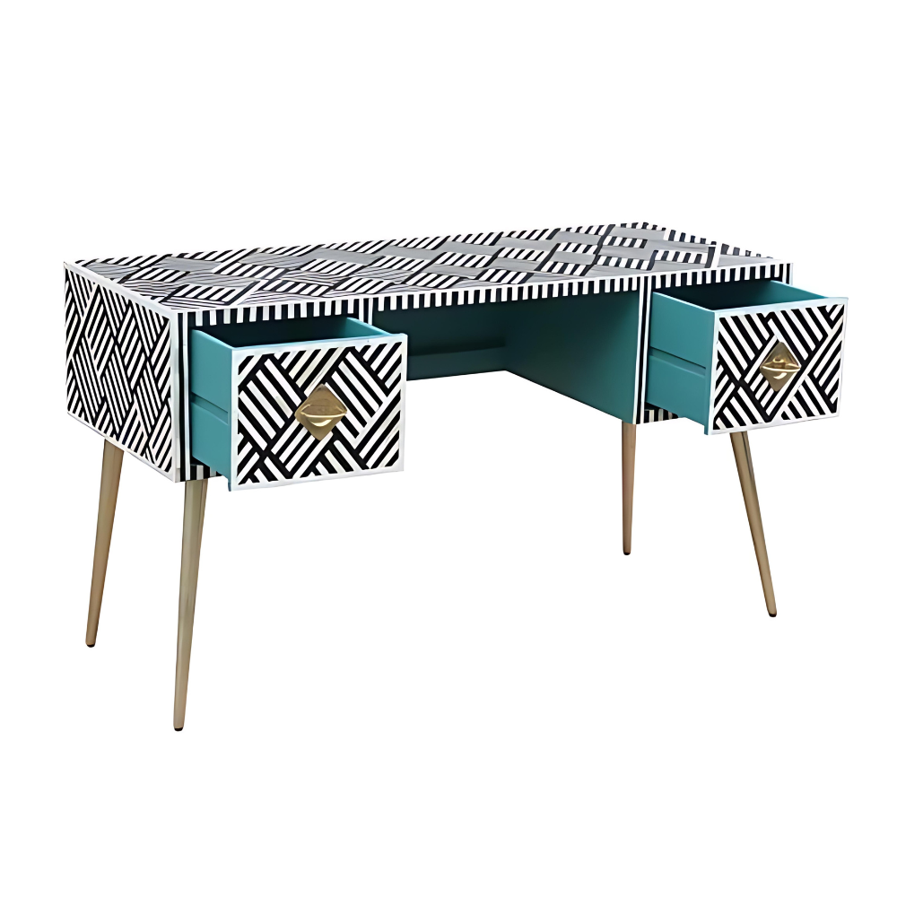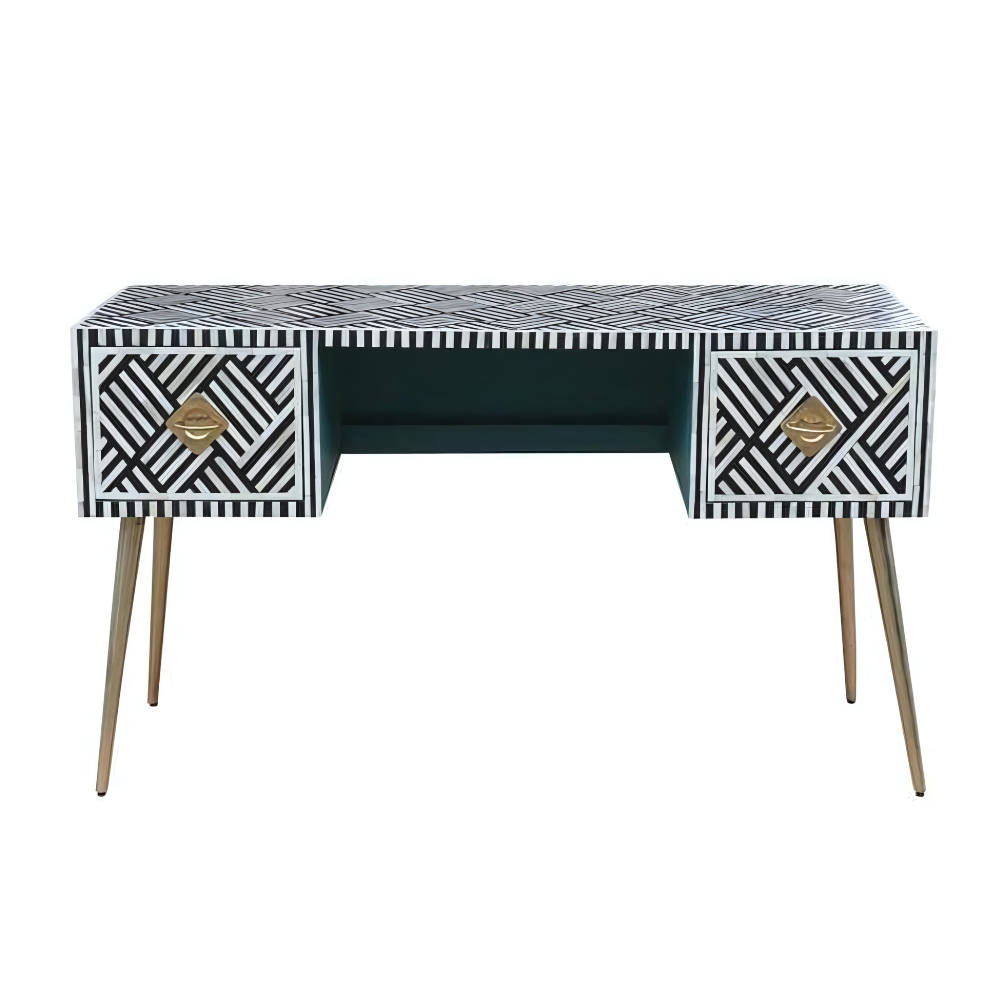 Defined by lines and handcrafted optical patterns, this statement piece makes a sculptural focal point in any room, with form and function equally playing a role. The graphic style and gentle brass footed feature are hallmarks of our signature style to mix up materials. Featuring two spacious drawers to store stationery or makeup. With a study desk or dresser this pretty, we’re sure it’ll be difficult to concentrate on the actual task!