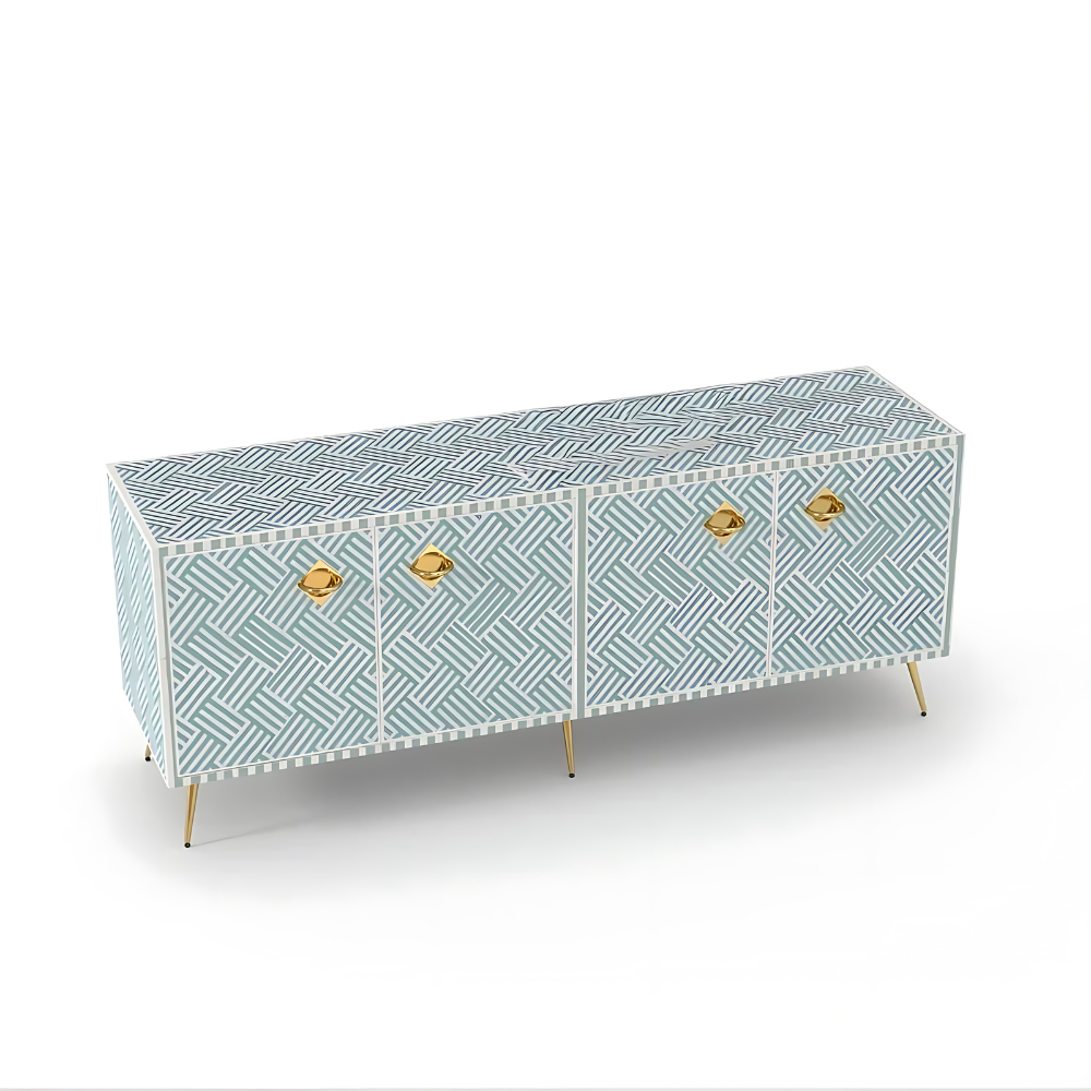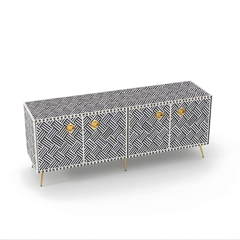 Contemporary Classics Bone Inlay Optical Style TV Unit Cabinet
