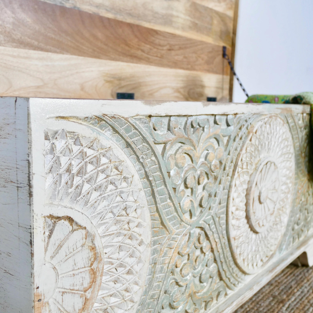 Home Shop Hand Carving Trunk Box Hand Carved Rustic White Trunk Box