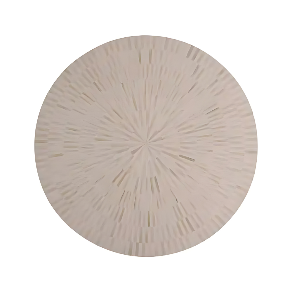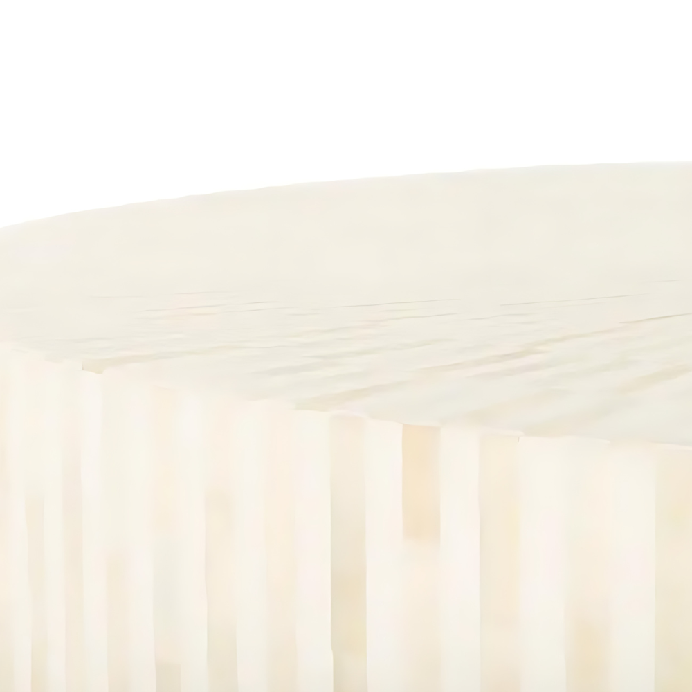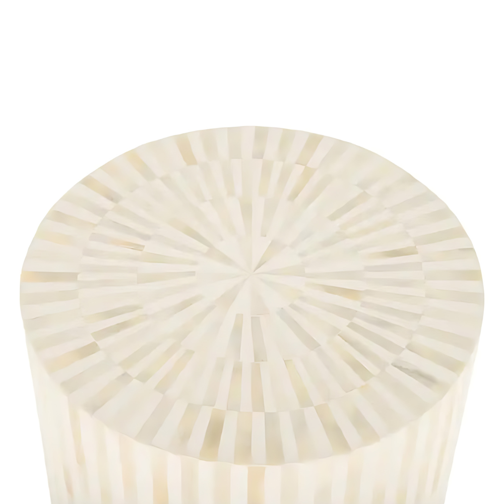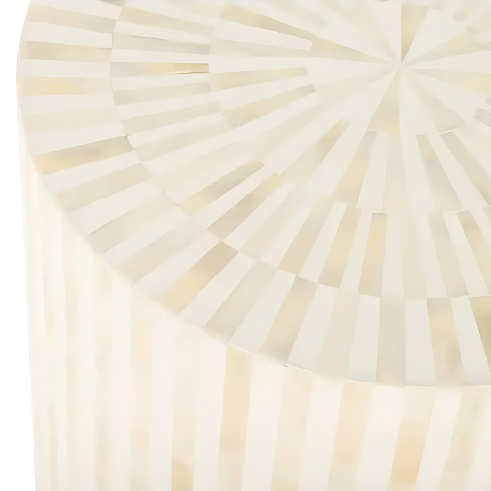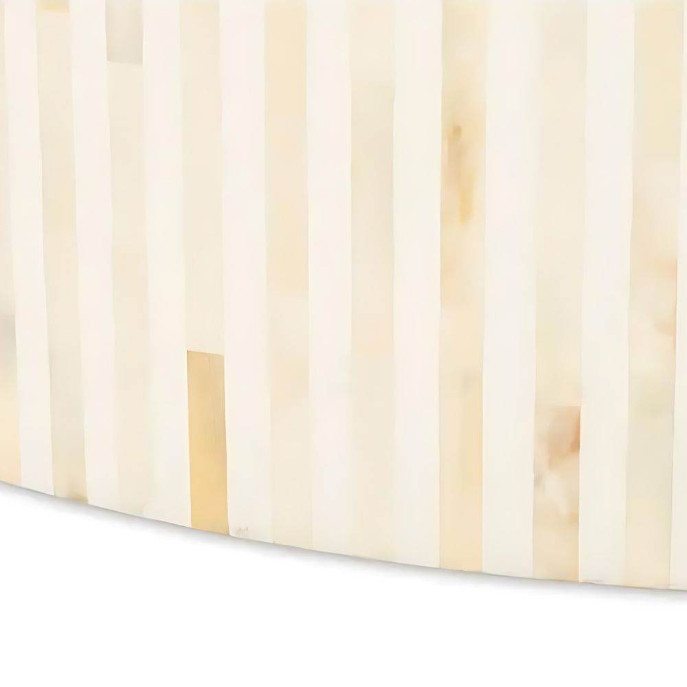The Serena Round Coffee Table features artisanal bone inlay craftsmanship from India using ethically sourced camel bone resulting in a unique finish.